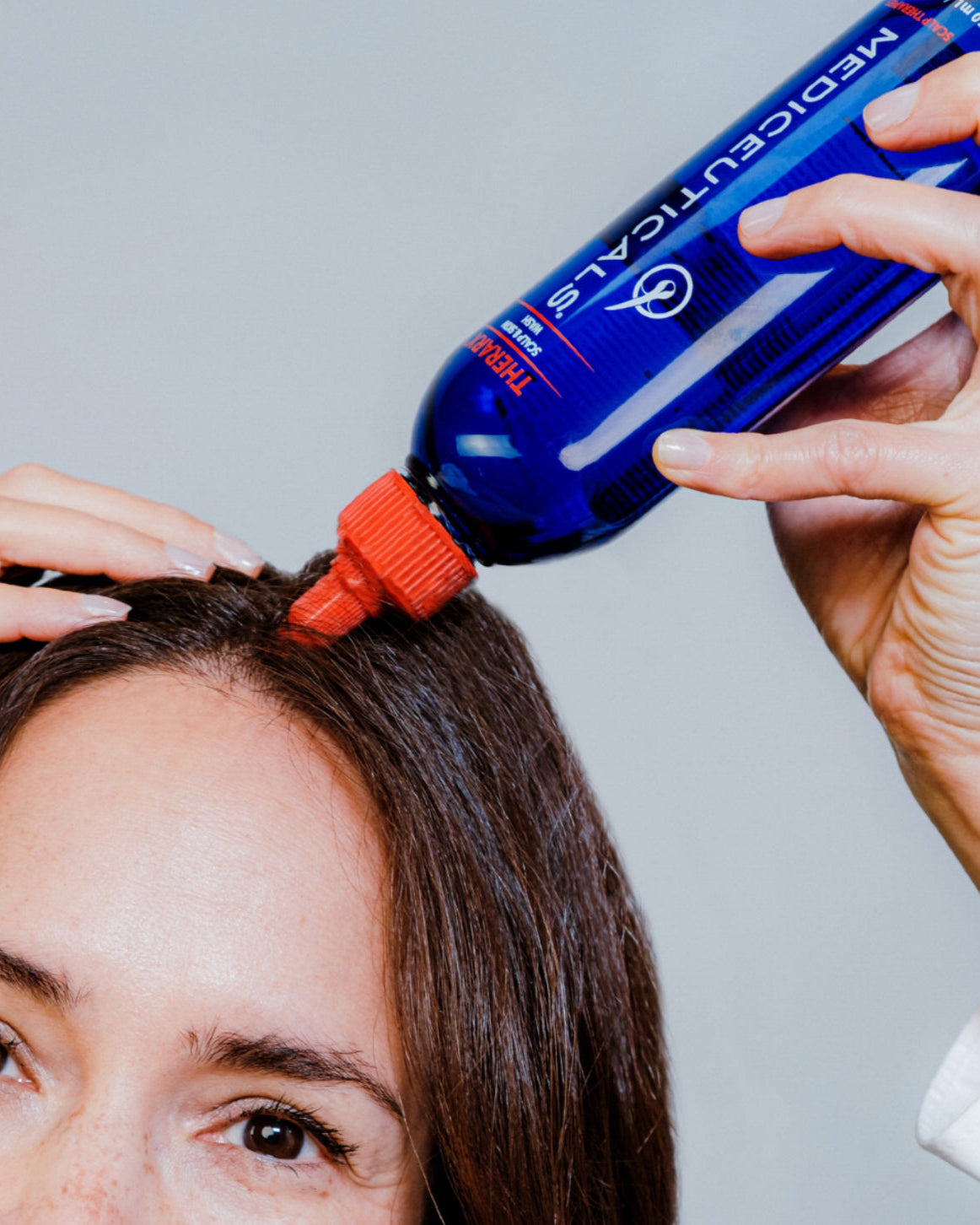 TheraRx ist ein beruhigendes Kopfhaut- und Hautpflegeprodukt, das gezielt bei Irritationen, Rötungen oder fettiger, empfindlicher Kopfhaut zum Einsatz kommt – als effektive Vorbereitung vor der eigentlichen Haarwäsche.